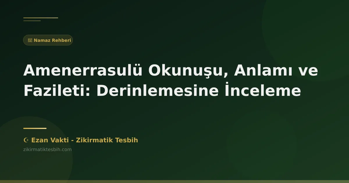 Amenerrasulü, Bakara Suresi'nin 285. ve 286. ayetleridir. Bu ayetler, Allah'a imanı, peygamberlere itaati, ahirete inancı ve yapılan duaların kabulünü içerir. Müslümanlar için büyük bir öneme sahip olan Amenerrasulü, yatsı namazından sonra okunması sünnet olan ayetlerdendir. Ayrıca, bu ayetlerin her gece okunması, kişiyi şeytanın şerrinden ve diğer kötülüklerden koruduğuna inanılır.