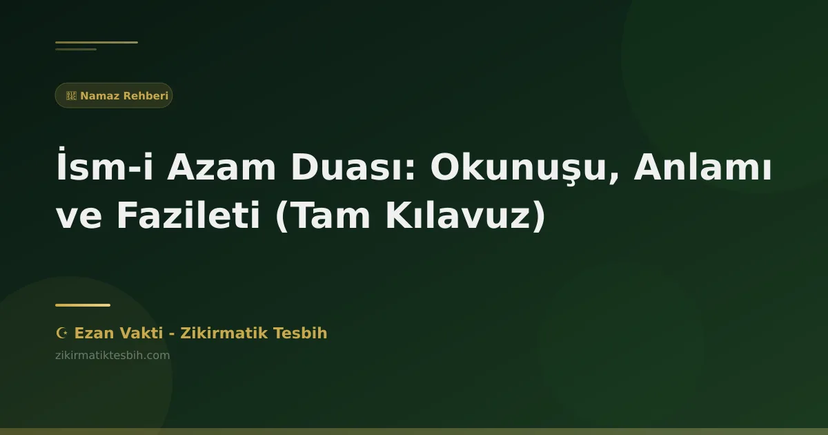 Unutmayalım ki, dua sadece İsm-i Azam ile değil, Allah'ın tüm güzel isimleriyle yapılabilir. Önemli olan, kalbin Allah'a yönelmesi ve O'ndan samimiyetle yardım dilemektir. Namaz vakitleri de dualarımızın kabulü için önemli bir zaman dilimidir.
